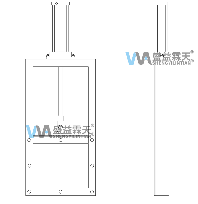 主要由框架、閘板、氣缸、螺(luó)母等零件構成,根據氣缸的伸縮使活塞杆帶動閘(zhá)板沿水平方向往複運(yùn)動,達到閘門(mén)的啟閉目的。